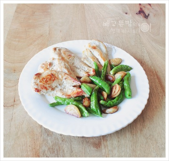 Una vez que el ajo esté fragante y empiece a dorarse, añade los pimientos coreanos verdes a la sartén. Saltea con el pollo y el ajo solo por uno o dos minutos, hasta que estén ligeramente tiernos pero aún vibrantes. Evita cocinar los pimientos en exceso. Servir el pollo a la plancha con los tiernos pimientos y el aromático ajo crea una experiencia de sabor verdaderamente excepcional. ¡Disfruta de esta deliciosa pechuga de pollo a la plancha con ghee, una comida perfecta y saludable!