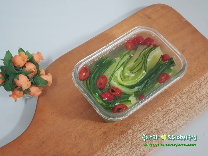 Para que sean más fáciles de colocar en el recipiente y de comer, corte las rodajas de pepino por la mitad. Los trozos del tamaño de un bocado son perfectos para disfrutar.