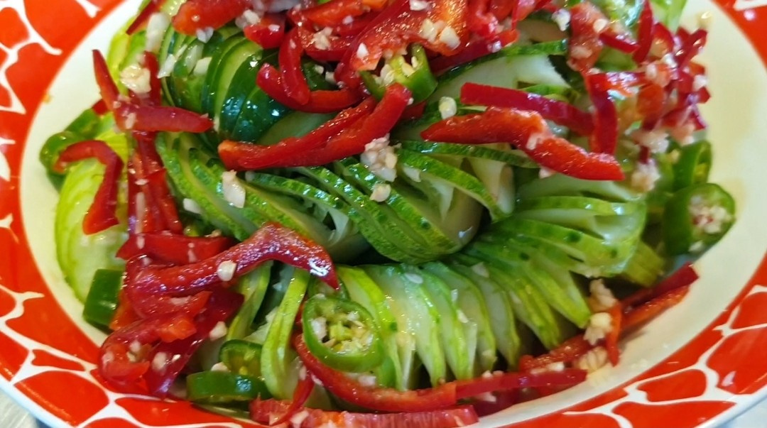Ingredientes para el Aderezo- 2 Cucharadas de Sal Marina Gruesa (ayuda a encurtir los pepinos y mantener su crocancia)