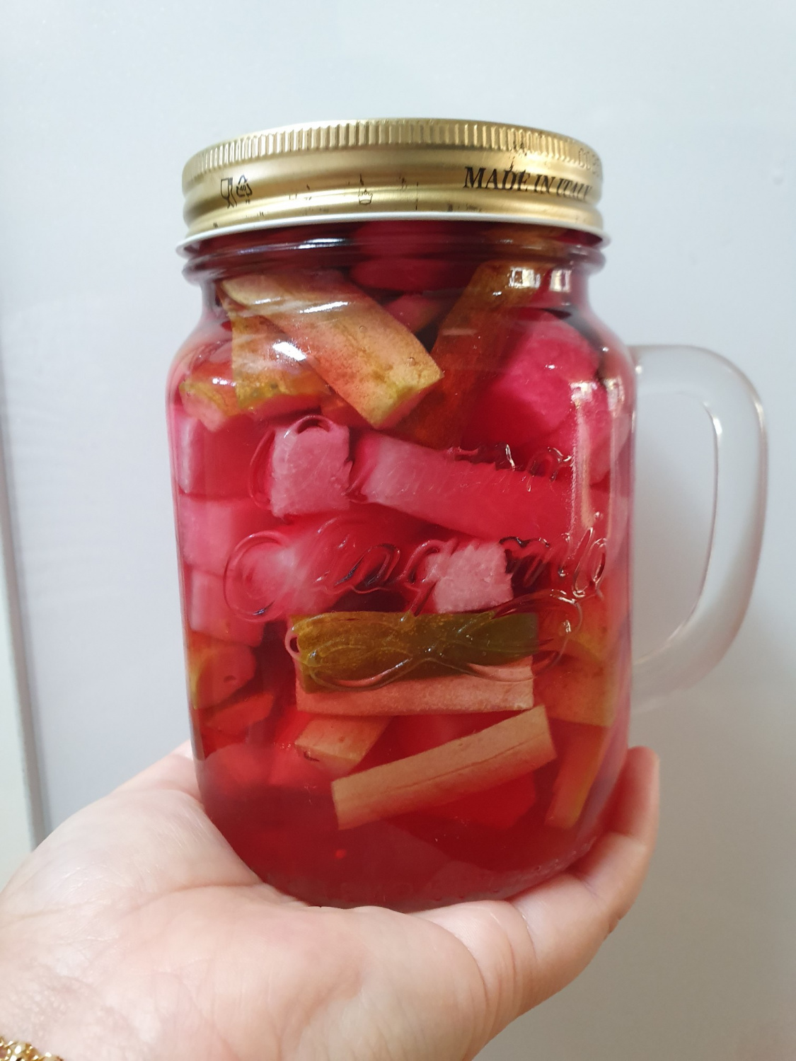 También agregué remolacha, que cultivé yo mismo. Como puedes ver, la hermosa remolacha roja se considera un ‘superalimento’ con muchos beneficios para la salud, incluidas propiedades antioxidantes y antiinflamatorias, y ayuda a regular la presión arterial y el nivel de azúcar en sangre. ¡También añade un hermoso matiz rosa natural a los pepinillos, mejorando su atractivo visual. ~♡