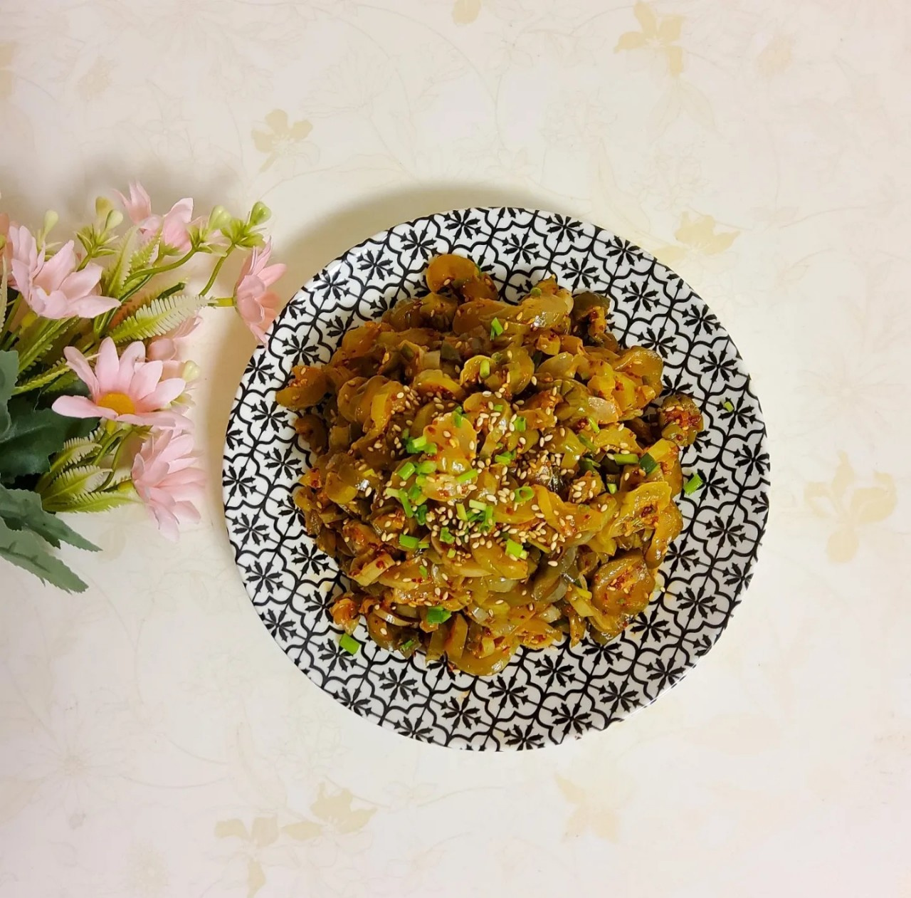 Completa tu repertorio de guarniciones con este Oi Muchim, que presenta un crujido satisfactorio y un equilibrio perfecto de sabores dulces, ácidos y picantes. ¡Es tan bueno que te terminarás un tazón de arroz en muy poco tiempo!