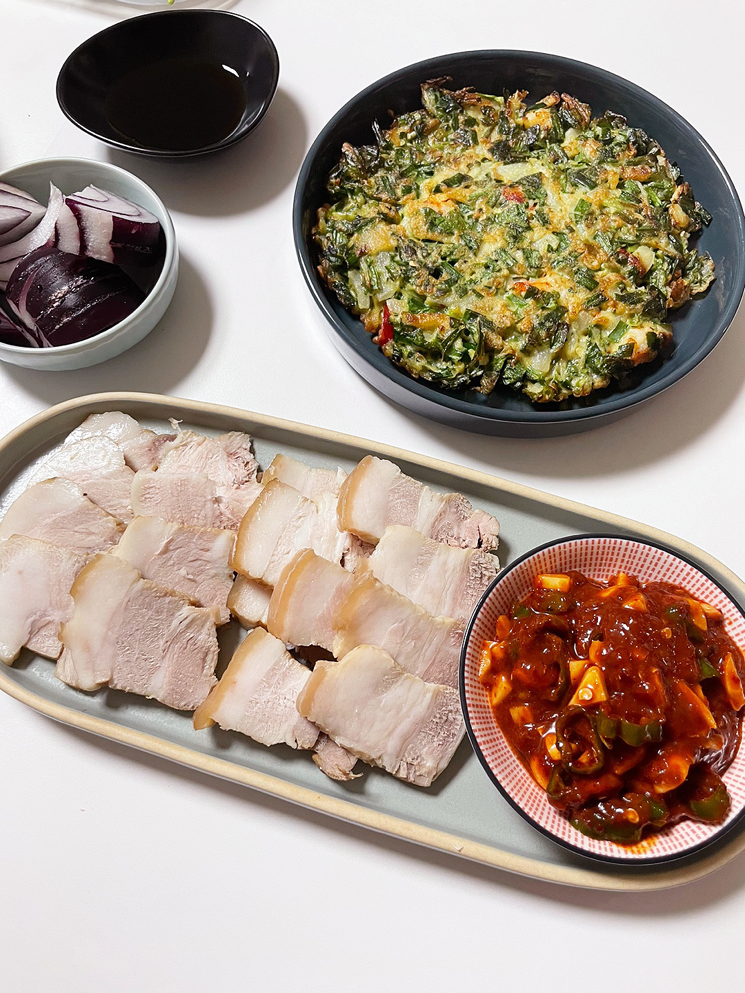 Sirva el cerdo frío cortado finamente junto con la sabrosa salsa para mojar y disfrute de este delicioso plato. ¡Combina maravillosamente con Pyeongyang naengmyeon o un tazón de arroz caliente para una comida completa!