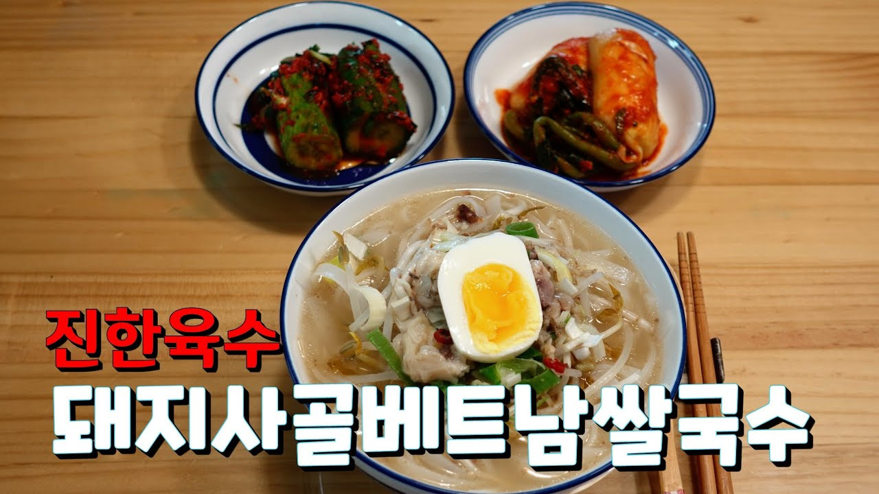Escalda los huesos de cerdo remojados en agua hirviendo durante 10 minutos para eliminar impurezas y cualquier olor fuerte. Enjuágalos bajo agua fría hasta que estén limpios. Coloca los huesos de cerdo limpios, 2 tazas de soju, agua de arroz, raíces de cebolleta, dientes de ajo y granos de pimienta negra en una olla. Lleva a ebullición a fuego alto, luego reduce a medio-bajo, tapa y cocina a fuego lento durante 2-3 horas hasta obtener un caldo rico y opaco. Retira la espuma que suba a la superficie durante la cocción para obtener un caldo más claro.
