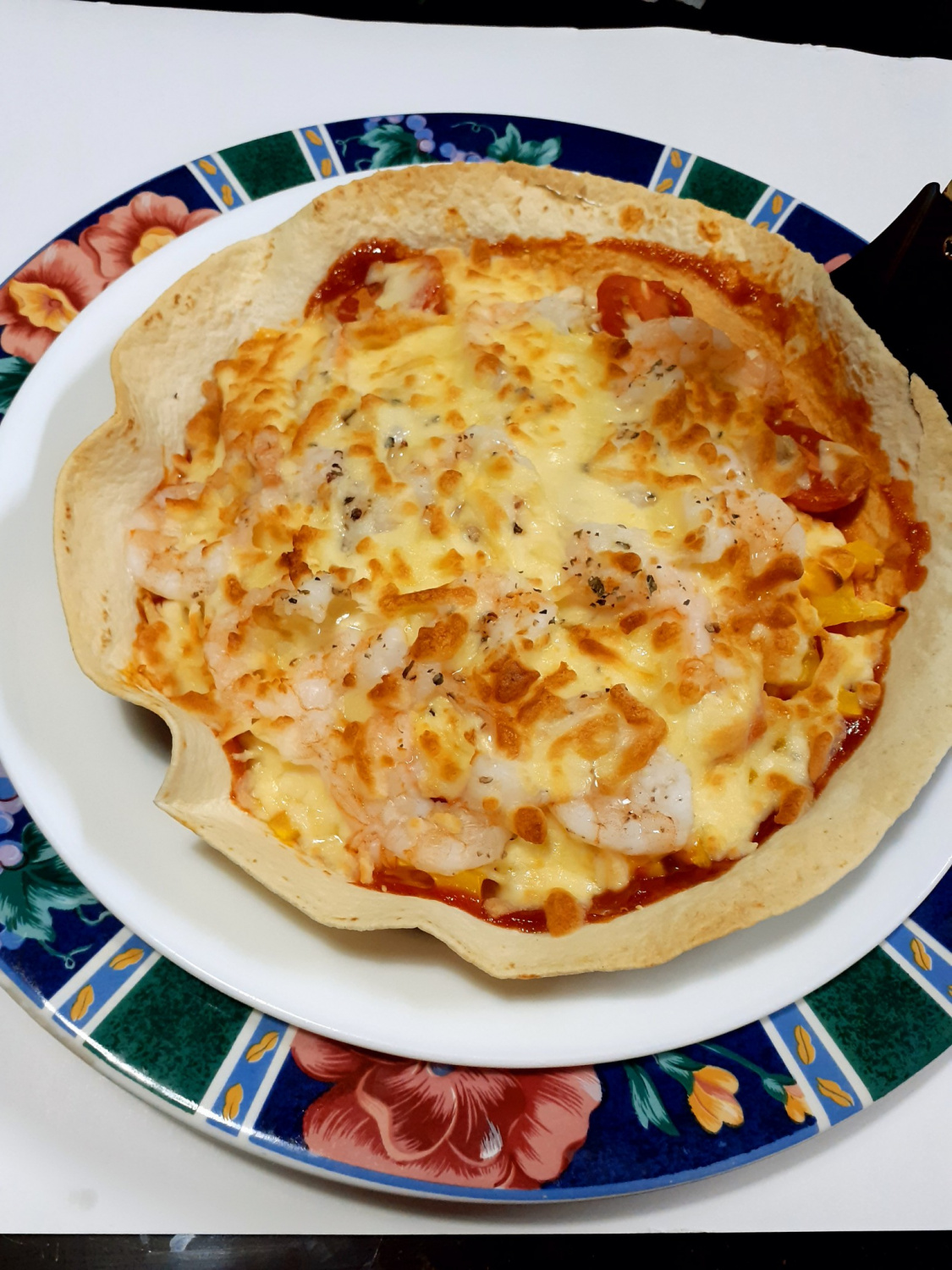 Pizza de Tortilla con Camarones Fácil y Deliciosa
