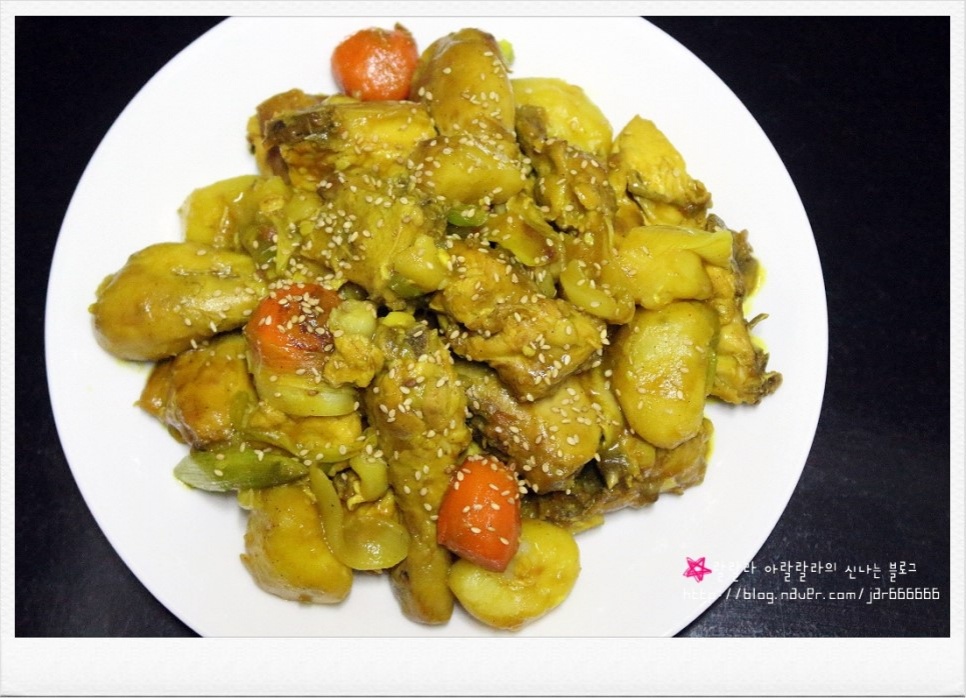 ※ Proporción de la Salsa Especial para Pollo Guisado al Curry: 4 cucharadas de curry en polvo, 3 cucharadas de salsa de soja, 1 cucharada de oligo sacárido, 1 cucharada de ajo picado, 2 cucharadas de vino de cocina, 0.5 cucharada de azúcar, una pizca de pimienta negra. (Todas las medidas se basan en una cuchara sopera/cuchara de arroz).