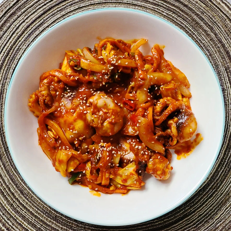Les presentamos una receta de pulpo de roca salteado (Jjukkumi Bokkeum), que combina una textura masticable perfecta con una salsa picante y dulce. Hemos utilizado pulpo fresco para realzar el sabor. Si prefieren que esté más picante, no duden en añadir más chiles Cheongyang o hojuelas de chile. Servirlo con brotes de soja blanqueados añade un crujido delicioso y hace que el plato sea aún más satisfactorio. (Las medidas se basan en una cuchara de sopa coreana estándar)