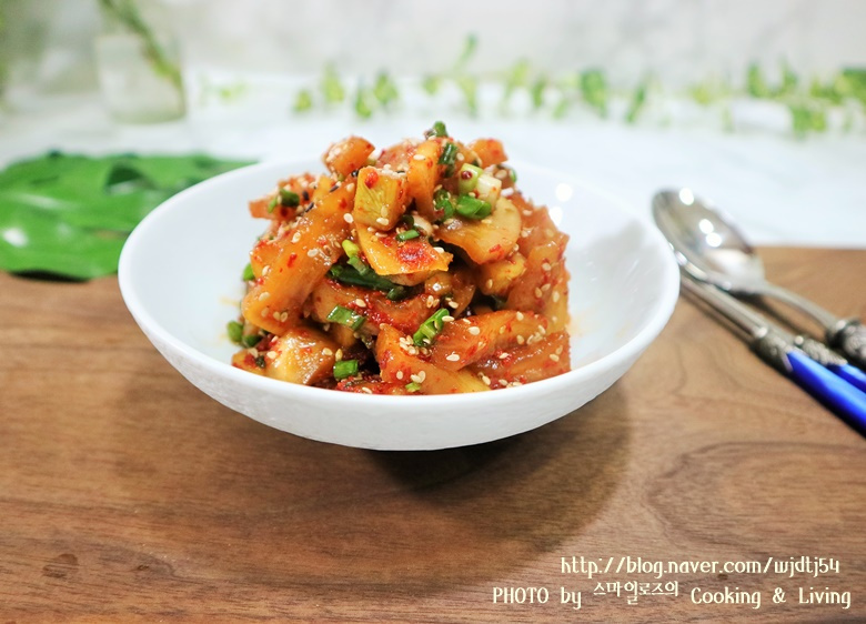 Si ha pasado una semana desde que preparó su radish jangajji, ¡es el momento perfecto para marinarlo! También puede usarlo como relleno para kimbap o onigiri. ¡La textura crujiente y a la vez tierna es verdaderamente excepcional! (Nota: Para instrucciones sobre cómo hacer radish jangajji, por favor consulte el enlace del blog: https://blog.naver.com/wjdtj54/222264976193)