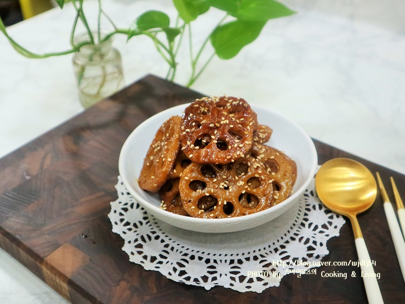 La raíz de loto está en temporada y es excepcionalmente fresca, crujiente y deliciosa. La raíz de loto es un vegetal de raíz versátil que se puede disfrutar en platos glaseados, salteados o ensaladas, y es un sabor que nunca me cansa. Hice esta raíz de loto glaseada, masticable y crujiente después de mucho tiempo, y estaba tan deliciosa que terminé comiendo demasiado arroz. ¡La brillante, crujiente y masticable raíz de loto glaseada estaba tan buena que preparé dos porciones, pero desaparecieron en poco tiempo. ¡Definitivamente deberías intentar preparar este maravilloso plato!