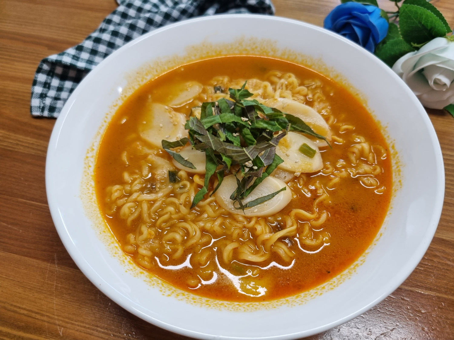 ¿Alguna vez has añadido pasteles de arroz tteokguk a tu ramen instantáneo? Prueba a agregar ssamjang (pasta de soja fermentada coreana) al caldo de tu ramen para obtener un sabor sorprendentemente profundo y sabroso. ¡Transforma el ramen ordinario en una comida rica y satisfactoria, reminiscente de un reconfortante guiso coreano! ^^