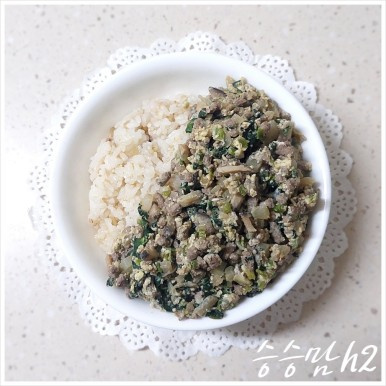 Sirve el arroz blanco cocido tibio en un bol. Cubre generosamente con el revuelto de ternera y espinacas preparado. ¡Este delicioso bowl de arroz está listo! Puedes añadir un chorrito de aceite de sésamo para darle más sabor si lo deseas.