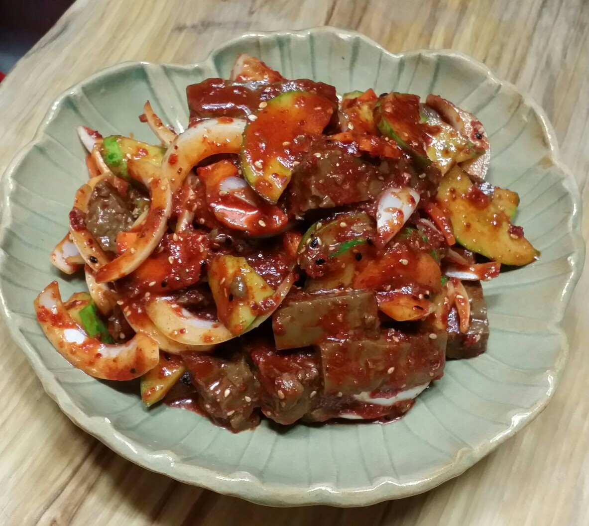 En un bol pequeño, combina los ingredientes del aderezo: 5 cucharadas de salsa de soja sazonada, 2 cucharadas de azúcar, 3 cucharadas de vinagre, 3 cucharadas de gochugaru y 1/2 cucharada de ajo picado. Mezcla bien con palillos o un pequeño batidor hasta que el azúcar se disuelva. No dudes en ajustar las proporciones del aderezo a tu gusto personal.