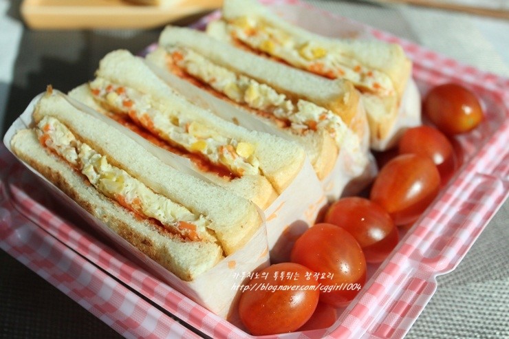 En un bol grande, bate los 5 huevos hasta que estén bien mezclados. Añade el repollo y la zanahoria en juliana, junto con los granos de maíz escurridos, al bol. Sazona con 2/3 cucharadita de sal y una pizca de pimienta negra. Mezcla todo hasta que esté bien combinado. Esta mezcla formará el relleno de tu sándwich.