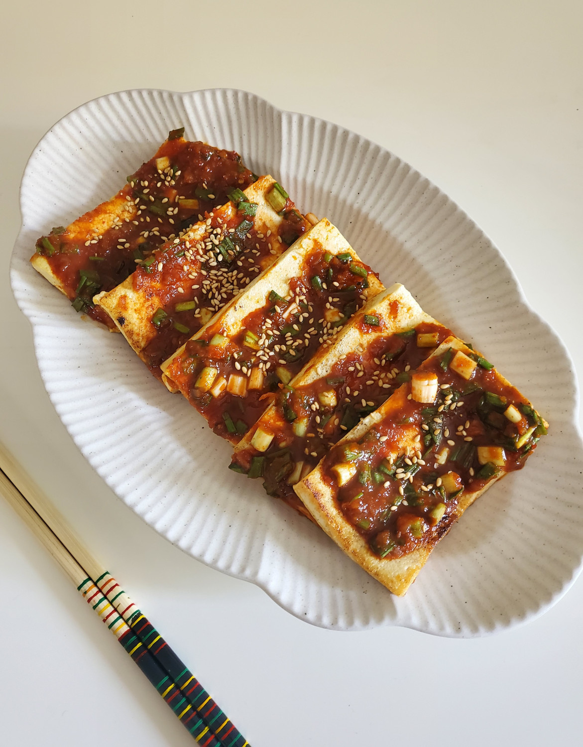Si siempre usa solo salsa de soja para el tofu estofado, hoy preparamos una versión especial y picante usando gochujang (pasta de chile coreana) y gochugaru (copos de chile coreano). ¡Es un delicioso acompañamiento que le hará pedir más arroz!