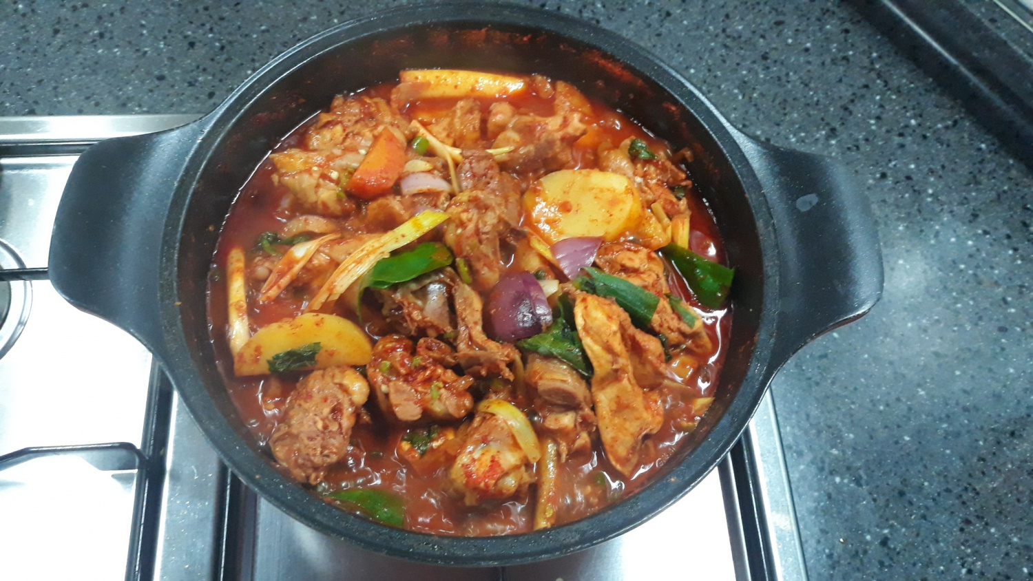 ¡Como la cocina de mamá! Aquí tienes una receta de Dakbokkeumtang que cualquiera puede hacer deliciosamente con ingredientes sencillos. La armonía de la salsa picante-dulce, el pollo tierno y las verduras crujientes es excepcional. ¡Es un verdadero ladrón de arroz! ¡Ñam ñam!