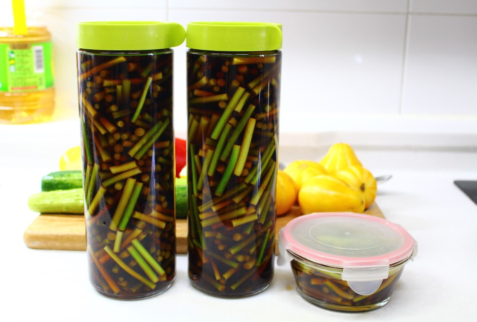 ¿Se le están acabando las ideas para guarniciones diarias? ¡Para esos momentos, pruebe a preparar estas contundentes escobas de ajo encurtidas con ajos tiernos frescos y de temporada! Las escobas de ajo están en su mejor momento y son fáciles de encontrar en los mercados. Un solo manojo rinde una cantidad generosa, perfecta para hacer una guarnición básica que dura mucho. Esta receta utiliza la popular proporción de 1:1:1:1 para la mezcla de salsa de soja, creando un delicioso sabor agridulce. Puede ajustar el azúcar o el vinagre según su preferencia de dulzor o acidez. Preparar escobas de ajo encurtidas es sorprendentemente sencillo: solo tiene que hervir los ingredientes sazonados y verterlos sobre las escobas de ajo preparadas. Combinan maravillosamente con carnes a la parrilla y ofrecen un toque único y delicioso a sus wraps, diferente al del ajo encurtido normal.