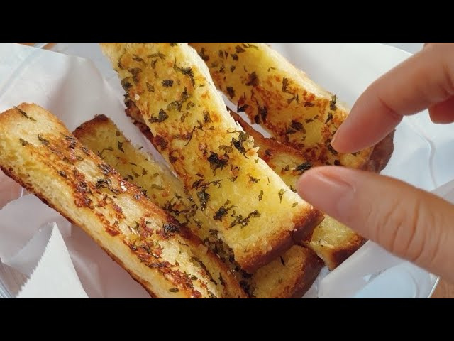 Pan de ajo crujiente hecho con pan de molde, ¡sin necesidad de horno!