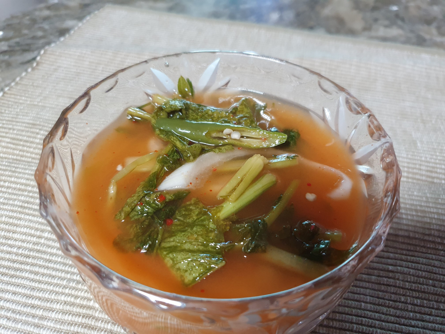 Este delicioso Yeolmu Mul Kimchi es un manjar perfecto para el verano cuando se sirve con fideos fríos.