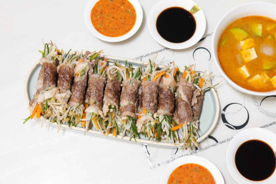 ¡Contemple la irresistible apariencia de estos Rollitos de Pechuga de Res al Vapor! Son el plato perfecto para fiestas de inauguración de casa, celebraciones de cumpleaños, para agasajar a invitados de honor o para cualquier fiesta especial en casa. La pechuga de res, cortada finamente, es increíblemente tierna, haciendo que cada bocado sea un deleite. Si bien la carne sola podría ser un poco rica, al enrollarla con una variedad de vegetales frescos se crea un sabor equilibrado, sabroso y a nuez, con una maravillosa textura crujiente. Esta receta, inspirada en Baek Jong-won, ofrece una experiencia culinaria verdaderamente satisfactoria.