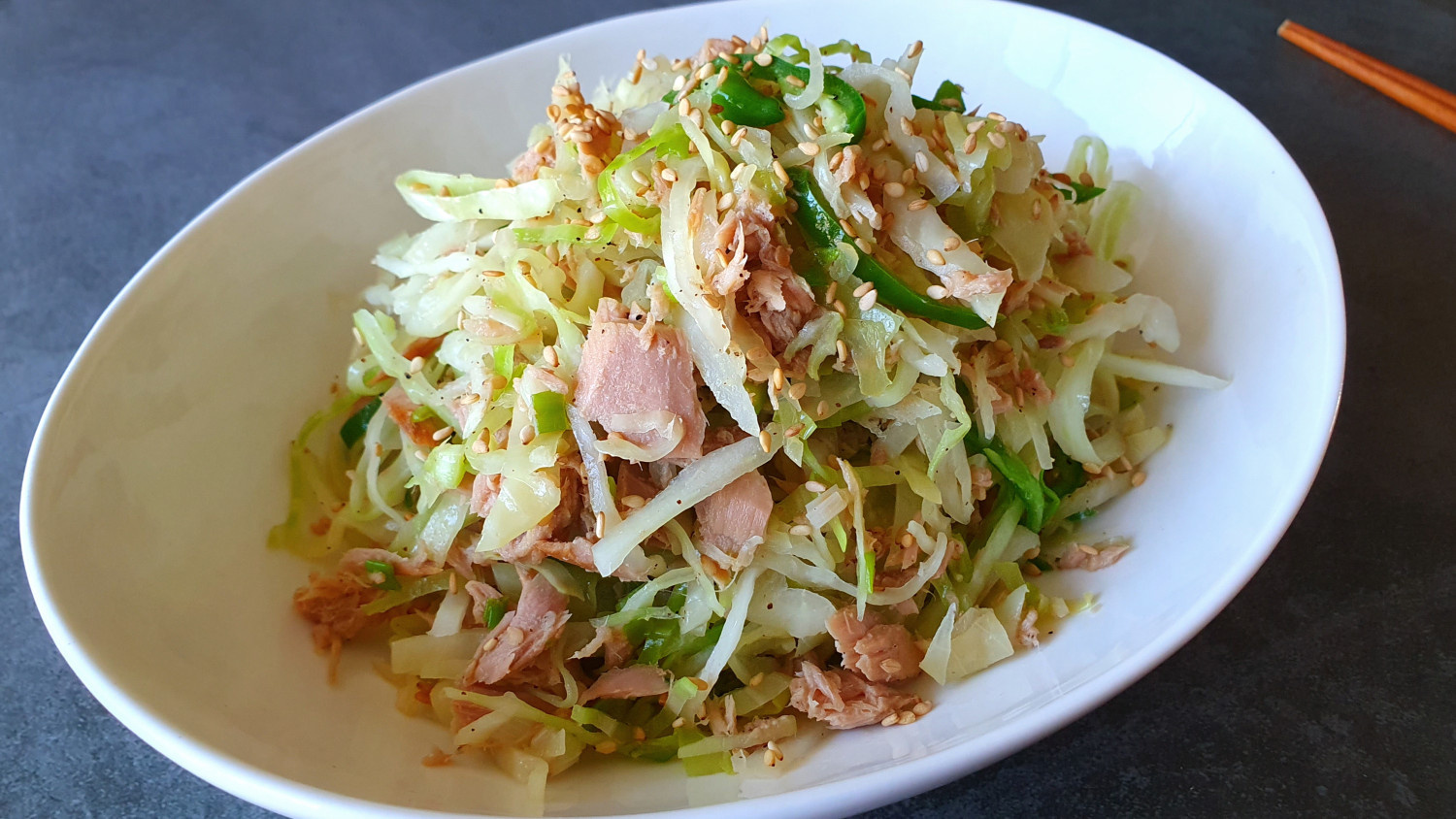 Salteado Crujiente de Repollo y Atún: Una Comida Dietética Satisfactoria