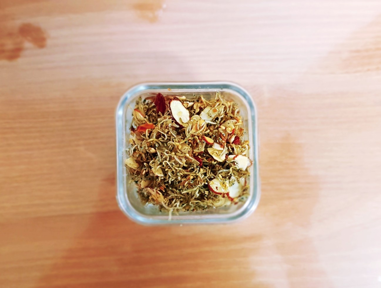 ¡Su delicioso salteado de anchoas con almendras está listo! ¿No se ve apetitoso? Es el acompañamiento perfecto para el arroz. ♡
