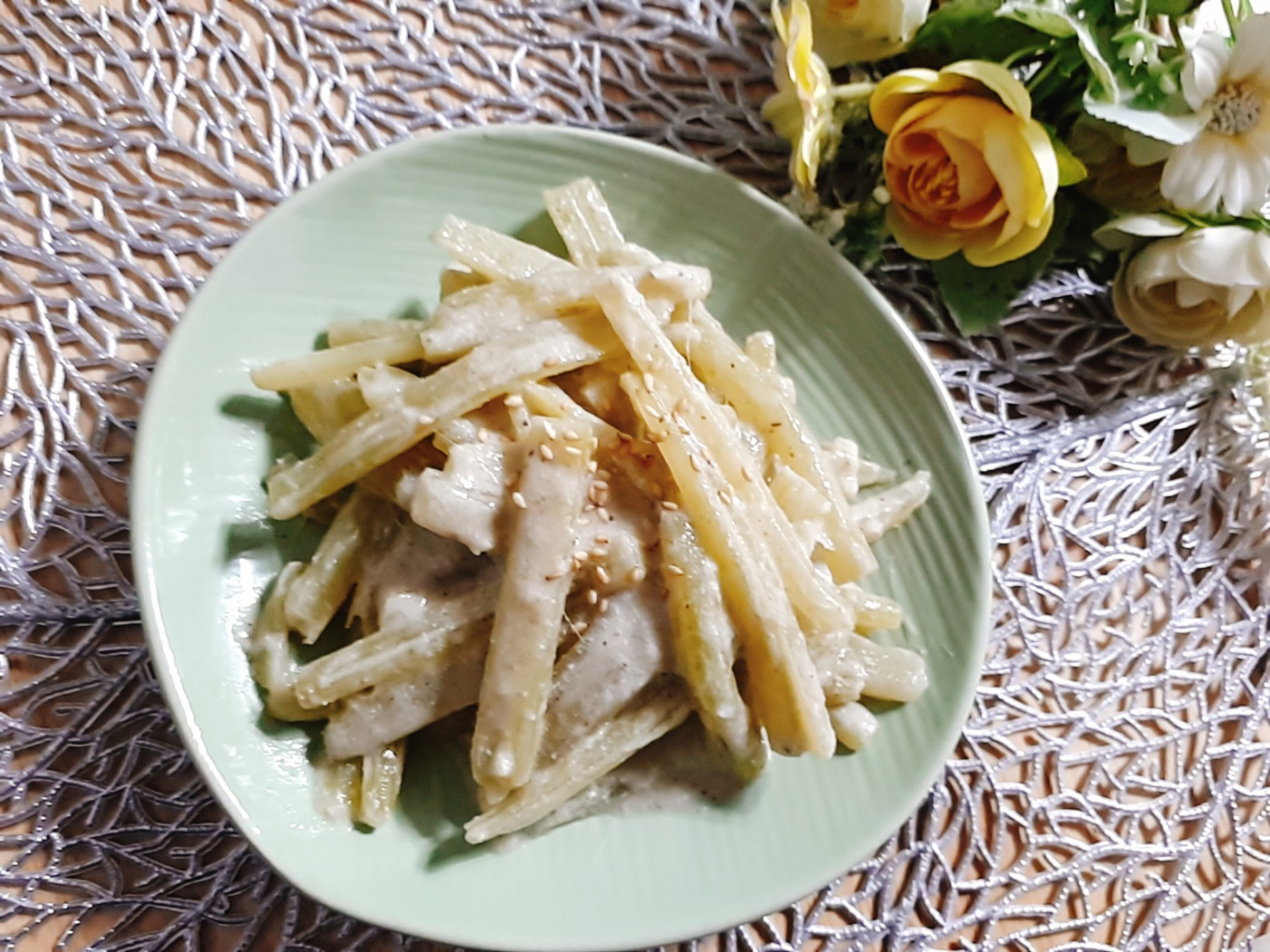 Salteado Crujiente y Sabroso de Petasites con Semillas de Perilla