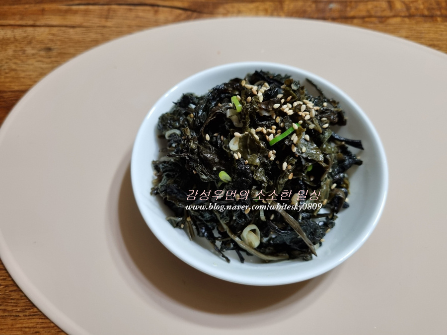 Una vez que el gondre esté suficientemente salteado, agregue 1 cucharada de cebolleta picada y rocíe 1 cucharada de aceite de sésamo. Saltee una vez más brevemente. Pruebe y ajuste el condimento si es necesario; se puede añadir una pizca muy pequeña de sal si es necesario, o puede agregar un poco más de salsa de soja coreana para sopa o extracto de atún para obtener más umami.