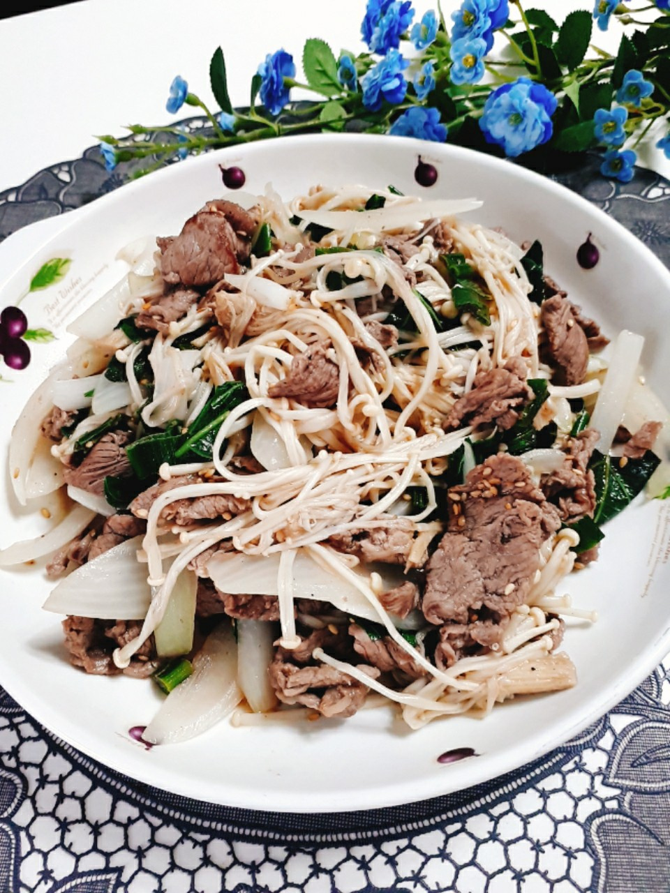 Salteado de Hongos Enoki y Carne de Res: Un Plato Ligero y Delicioso para Dieta