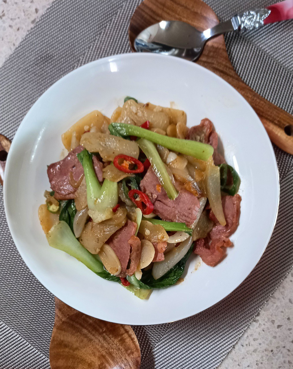 Receta Fácil y Rápida de Salteado de Patas de Cerdo Ahumado con Fideos Caseros