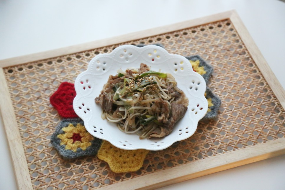 Cuando la carne de res esté casi completamente cocida, añade los brotes de soja escurridos y la mezcla de condimentos (salsa de ostras, salsa de soja y azúcar) a la sartén. Sube el fuego a alto y saltea rápidamente. Cocinar a fuego alto por un corto tiempo es crucial para mantener los brotes de soja crujientes y refrescantes.