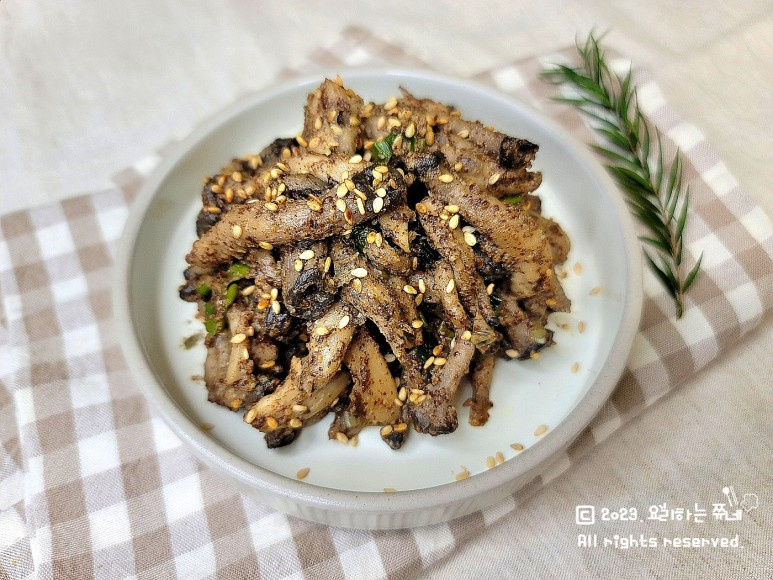 Apaga el fuego. Finalmente, espolvorea una pizca de semillas de sésamo por encima para un toque extra de sabor y presentación. ¡Tu delicioso y sabroso salteado de setas ostra con semillas de perilla está listo para ser disfrutado!