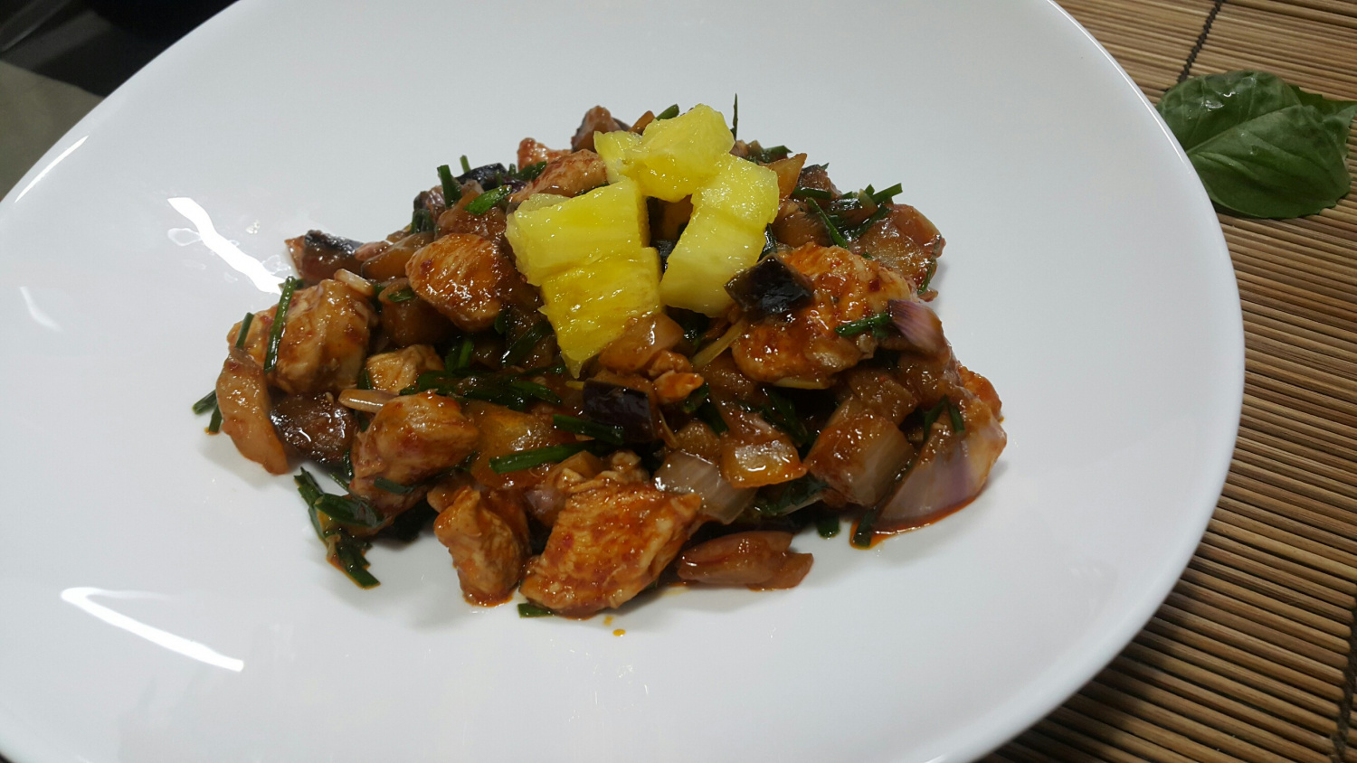 Salteado Picante y Dulce de Pollo y Berenjena ♧