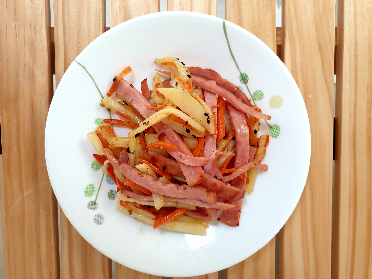 ¡Tu nutritivo y delicioso salteado de patatas con jamón está listo! Es un acompañamiento perfecto para servir con arroz caliente, ¡y a los niños les encantará! También es un excelente plato sencillo para cualquier comida.