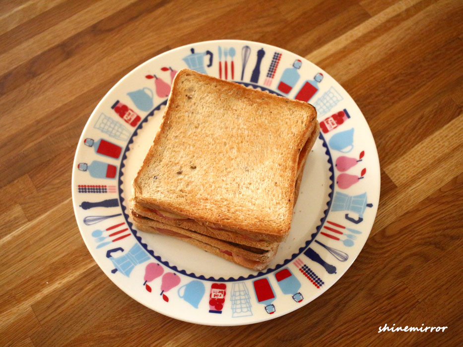 Calienta una sartén seca a fuego medio-bajo (sin necesidad de aceite). Cocina el sándwich montado por ambos lados hasta que esté dorado y ligeramente crujiente. Este proceso de calentamiento derrite ligeramente el queso y tuesta el pan maravillosamente. ¡Disfruta de este delicioso sándwich de jamón como una comida satisfactoria, quizás con un vaso de leche!