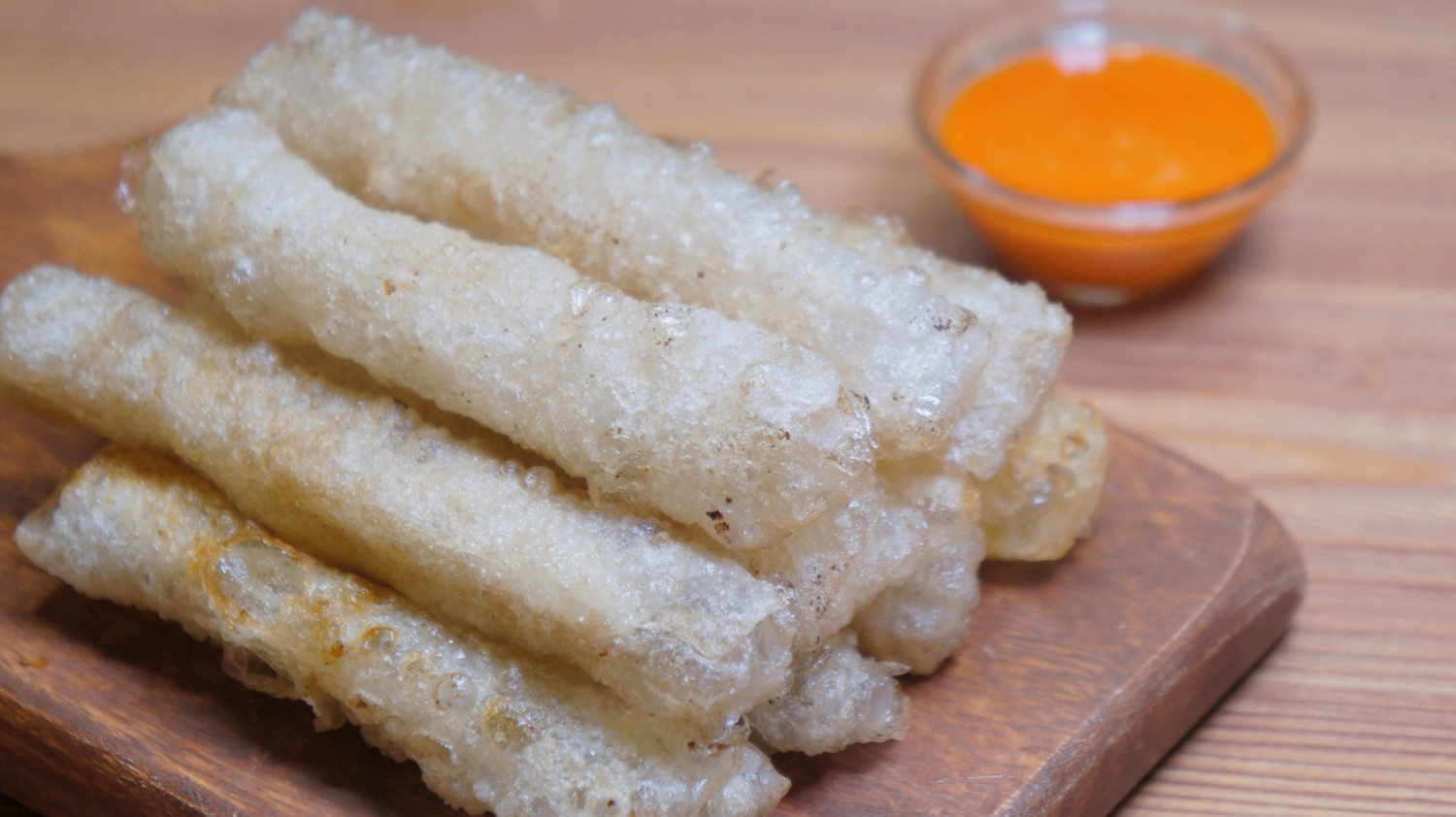 Las setas enoki envueltas en papel de arroz tienden a pegarse fácilmente. Para evitar esto, asegúrate de colocarlas con suficiente espacio entre cada una al ponerlas en un plato o en la sartén para freír. Este espacio permite que cada pieza se fría de manera uniforme y quede deliciosamente crujiente.
