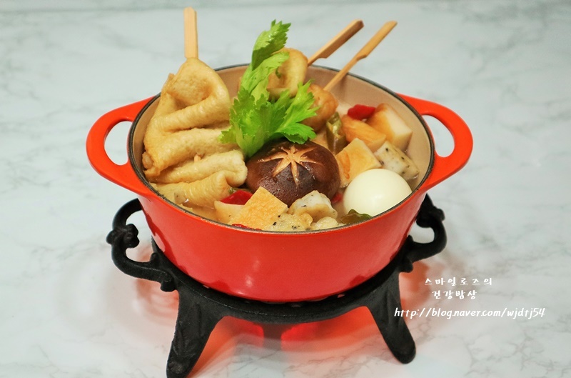 ¡Hice una olla de Eomuk Tang (sopa coreana de pastelillos de pescado) después de mucho tiempo! Una cucharada de este caldo cálido y sabroso se siente increíblemente reconfortante. Añadí algunos pastelillos de pescado cuadrados que tenía en casa, junto con champiñones shiitake y chiles para un sabor más rico. ¡Añadir un huevo cocido lo hizo aún más satisfactorio! ¡Esta sopa es perfecta para aumentar tu temperatura corporal en 1 grado en un día frío. ¡Una olla generosa de delicioso Eomuk Tang está completa!
