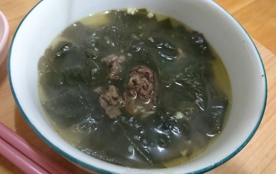 ¡Tu deliciosa y reconfortante Sopa de Algas Marinas con Res está lista! Disfruta de la textura única, tierna pero ligeramente masticable, de la carne de res para bulgogi en esta sabrosa sopa.