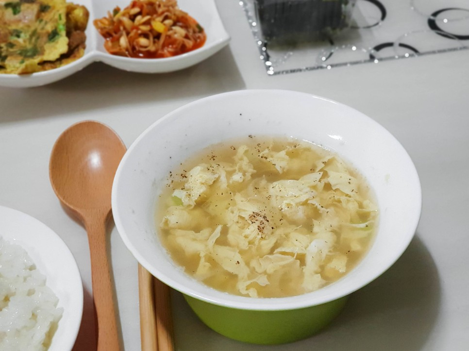 Finalmente, añade la cebolleta picada y deja que hierva a fuego lento un momento más. El aroma fresco de la cebolleta infusionará el caldo. Una pizca final de pimienta realzará el sabor general, completando esta sopa de huevo maravillosamente reconfortante. ¡Disfrútala bien caliente con un tazón de arroz!