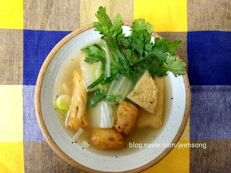 Una reconfortante sopa de pastel de pescado, enriquecida con col china para un sabor más saludable y delicioso.