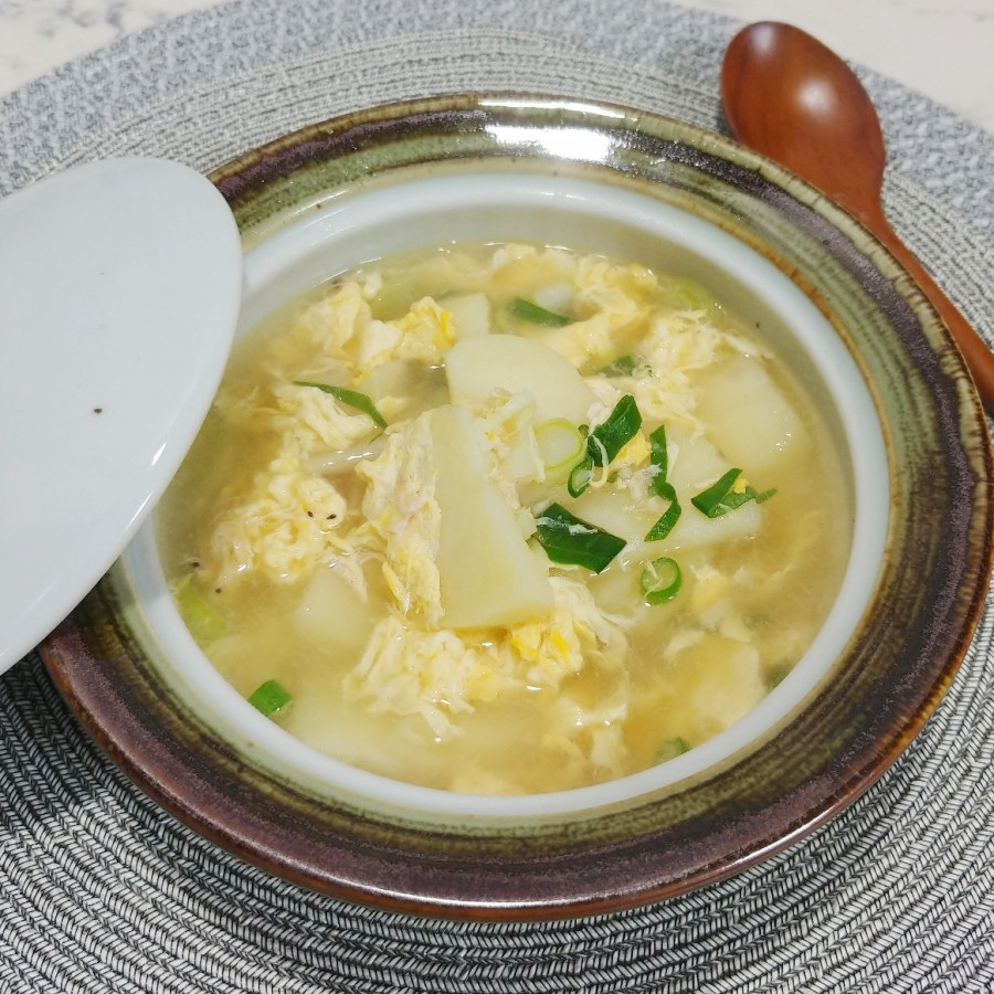 ¡El plato de hoy es ‘Sopa Sencilla de Patata y Huevo’. ¡Puedes conseguir un sabor profundo sin usar caldo!