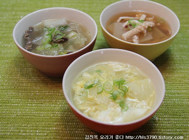 Sopa de Repollo y Carne de Res / Sopa Clara de Calamar / Sopa de Huevo y Patata
