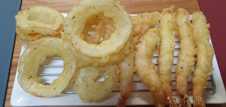 - Una pizca de perejil seco (para sazonar los camarones de río y la masa de tempura)
