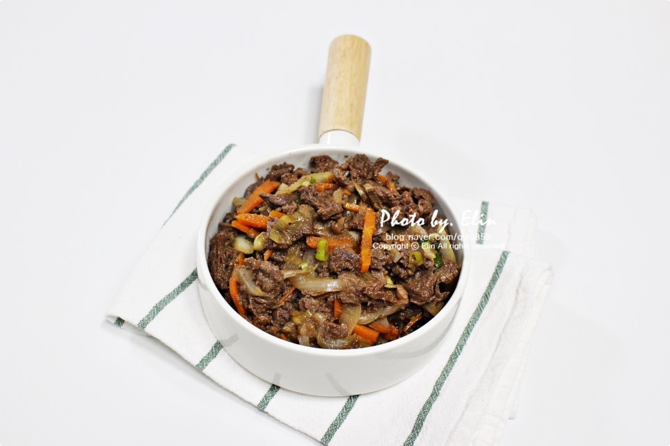 La Salsa Madre ya está sazonada con salinidad y dulzura, así que para ayudar a que los sabores se mezclen y crear una consistencia agradable de salsa, añadiremos aproximadamente medio cucharón de agua. Si prefieres un bulgogi más jugoso, puedes añadir un poco más de agua.
