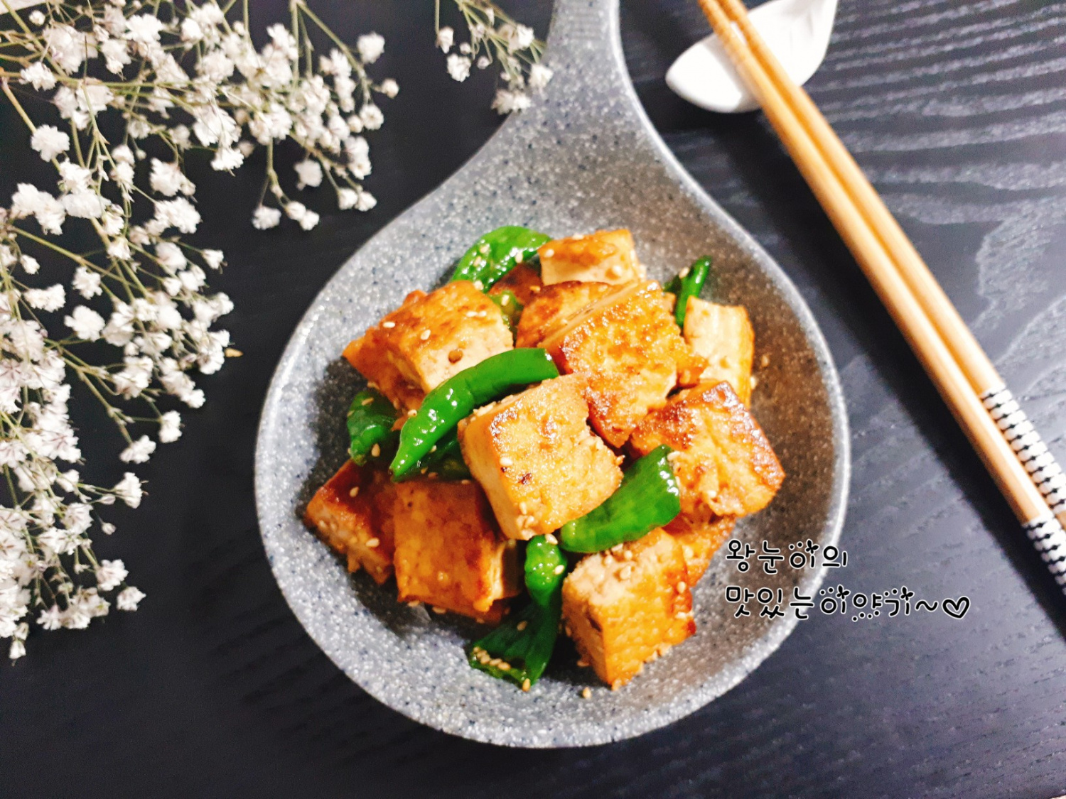 Les presentamos el ‘Tofu Estofado con Pimientos Verdes Coreanos’, donde el tofu suave se une a la deliciosa textura crujiente de los pimientos verdes coreanos para crear una combinación celestial. El sabor salado, sutilmente dulce y ligeramente picante de los pimientos crea un plato irresistible que combina perfectamente con el arroz. Es una guarnición fantástica, fácil de preparar y que se puede disfrutar durante días.