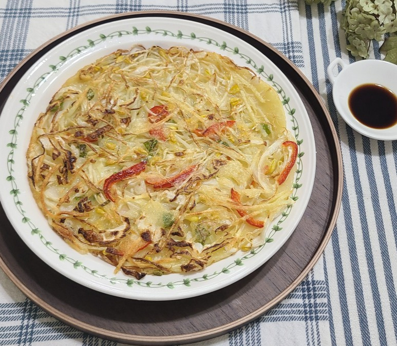 Tortitas Crujientes y Frescas de Repollo y Papa (con Brotes de Soja)
