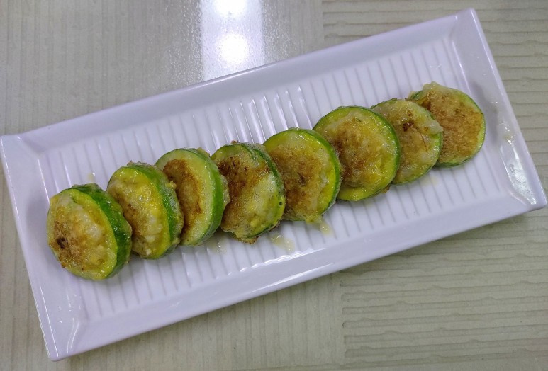 Calienta una sartén a fuego medio y añade una cantidad generosa de aceite para freír. Sumerge las tortitas de calabacín rellenas en el huevo batido, dejando que el exceso escurra. Colócalas suavemente en el aceite caliente y fríelas durante unos minutos por cada lado hasta que estén doradas y ligeramente crujientes. Dado que el calabacín y las gambas ya están parcialmente cocidos, solo necesitas cocinarlos hasta que el exterior esté bien dorado.