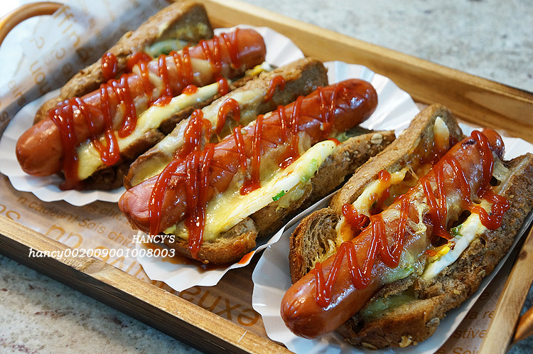 Una vez que el queso se haya derretido, coloca la salchicha asada encima de la tostada y dobla la otra mitad del pan sobre el relleno para formar un sándwich. Puedes asegurarlo con un palillo si lo deseas. Termina rociando kétchup decorativamente por encima.
