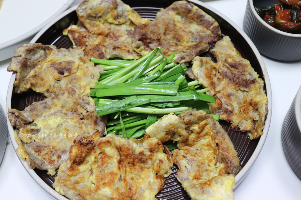 ¿No es cierto que los panqueques y el jeon (tortitas saladas coreanas) se disfrutan mejor recién salidos de la sartén, incluso si eso significa arriesgarse a quemarse el paladar? Los restaurantes especializados en jeon siempre los sirven recién hechos en la plancha, y ese sabor es verdaderamente inolvidable. ¡Hoy me pondré manos a la obra para mostrarte cómo hacer un delicioso yukjeon en casa que rivaliza con cualquier restaurante! Carne de res delgada y tierna, recubierta con una sabrosa masa de huevo y frita hasta obtener un dorado perfecto, es un acompañamiento maravilloso para el arroz y combina a la perfección con el makgeolli (vino de arroz coreano). ¡Eleva tu mesa con un yukjeon cálido y recién hecho!