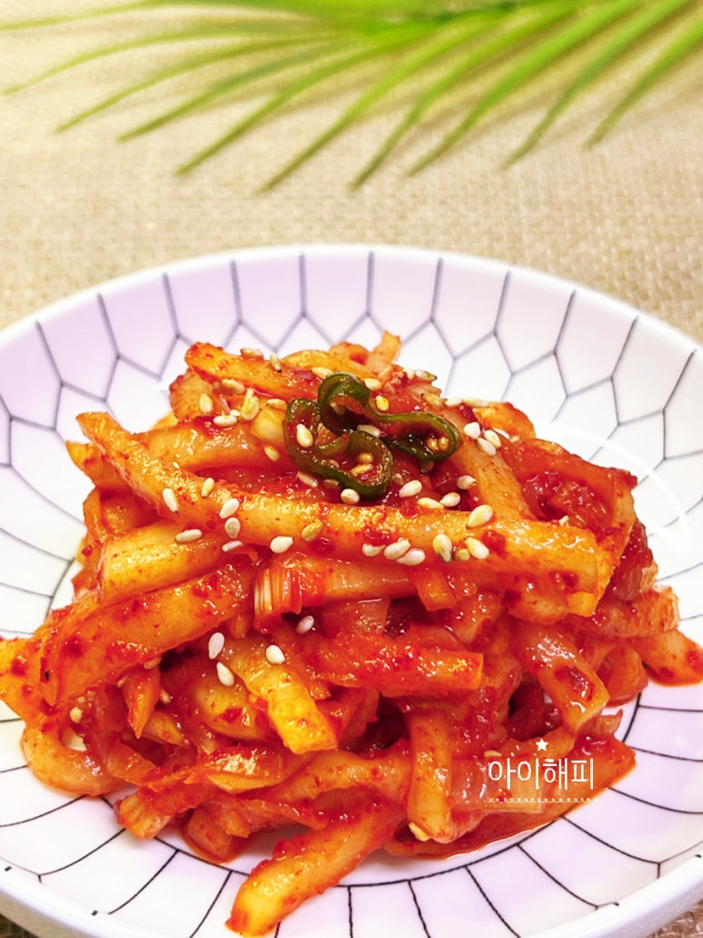 Ini adalah hidangan yang sempurna untuk hari-hari musim panas yang panas saat nafsu makan Anda berkurang! Mu Saengchae tidak hanya bagus untuk bibimbap, tetapi juga dapat diubah menjadi nasi goreng yang lezat jika ada sisa. Rasa asam segarnya dari cuka membuatnya sangat mendinginkan, dan kecap ikan menambahkan umami gurih yang membuatnya benar-benar membuat ketagihan. Secara pribadi, saya pikir menggunakan ekstrak plum sebagai pengganti gula juga akan lezat.