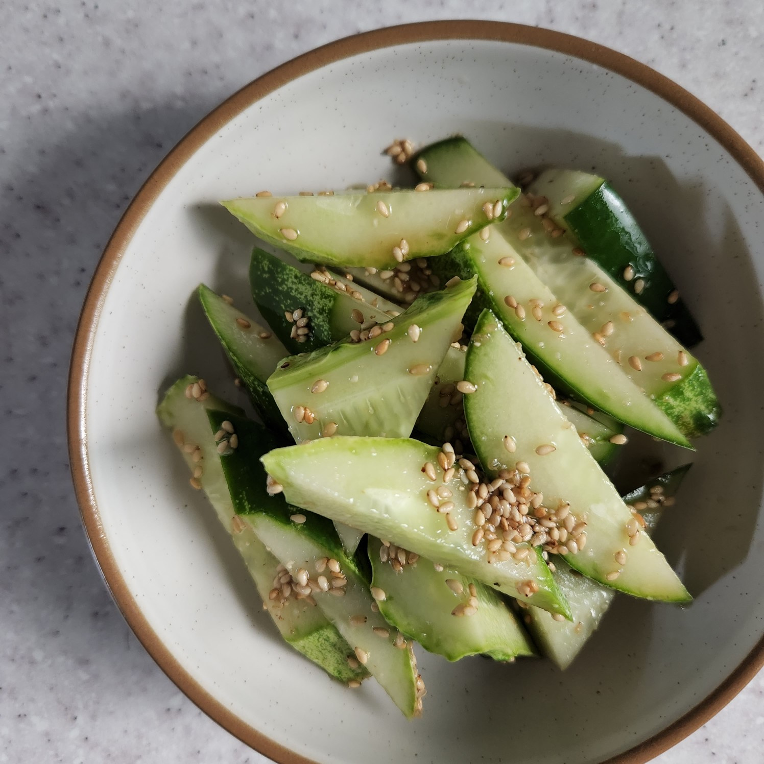 Setelah timun terbalut bumbu dengan baik, tambahkan wijen bubuk. Ini akan menambah aroma dan rasa kacang yang lezat.