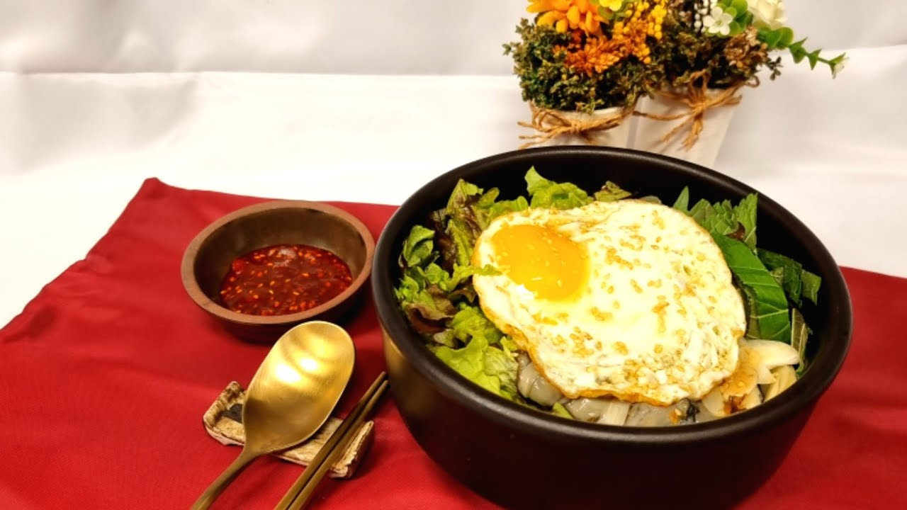 Taruh nasi hangat di dalam mangkuk. Atur tiram, kerang, sayuran iris, cabai cincang, dan telur mata sapi di atasnya agar terlihat menarik. Terakhir, taburi dengan biji wijen panggang, sedikit minyak wijen, dan tambahkan saus gochujang sesuai selera. Aduk rata dan nikmati hidangannya!